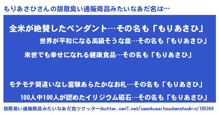 | ヒーロー風カッコイイあだ名 | 『ネオモリアサヒ』『暗黒騎士モリ』 |