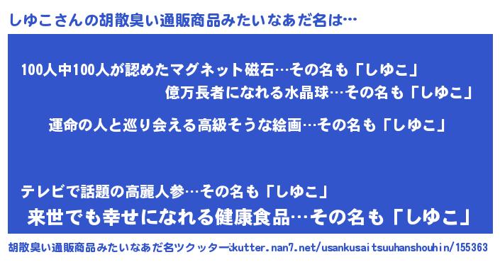 | 意味不明あだ名 | 『しゆこフォーエバー』『永久保存しゆこ』 |