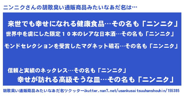 | 恥ずかしいあだ名 | 『ボンバーヘッドニン』『ニンちん』 |