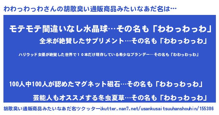 わわっわっわさんの胡散臭い通販商品みたいなあだ名をツクッター!