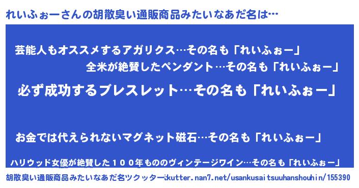 | ヘコむあだ名 | 『れいふぇ~』『れいっ子』『牛乳』 |