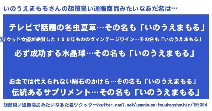 | 男性向けラノベタイトル風あだ名 | 『いのうえまもるの憂鬱』 |