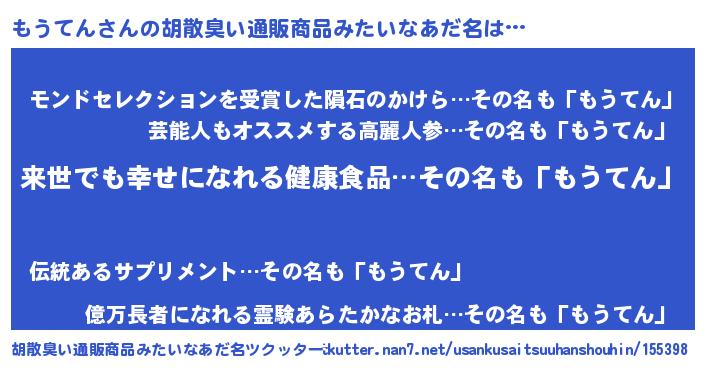 | ヘコむあだ名 | 『もうてん(爆)』『もうもー』 |