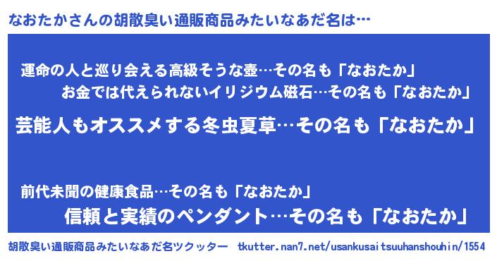 | 意味不明あだ名 | 『ヨモギ科なおたか属』『自称なおたか』 |