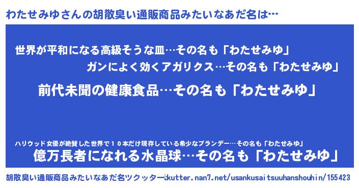 | ヘコむあだ名 | 『わたせみゆ(笑)』『なまこ酢』 |