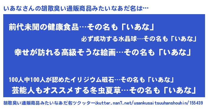 | 意味不明あだ名 | 『いあなフォーエバー』『永久保存いあな』 |