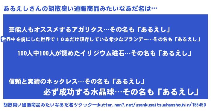 | 欧米人風あだ名 | 『ダニエルあるえし』『マイケルあるえし』 |