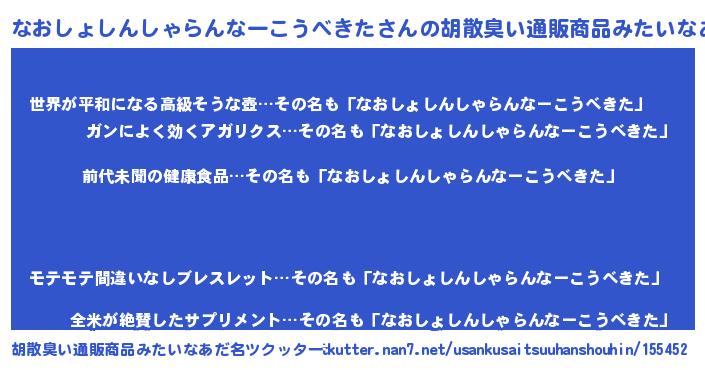| 意味不明あだ名 | 『永久保存なおしょしんしゃらんなーこうべきた』 |