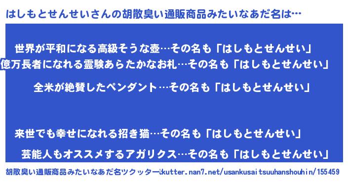 | 意味不明あだ名 | 『とにかく怪しいはしもとせんせい』 |