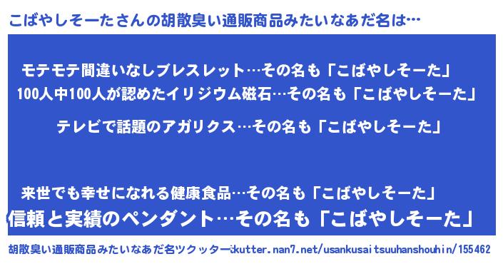 | 意味不明あだ名 | 『自称こばやしそーた』 |
