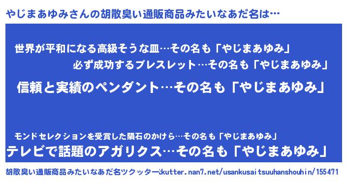 | 伝説のあだ名 | 『孤高の遊び人やじまあゆみ』 |