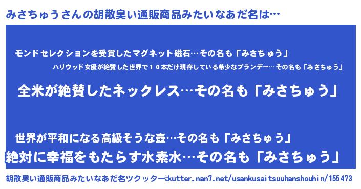 | 意味不明あだ名 | 『とにかく怪しいみさちゅう』 |