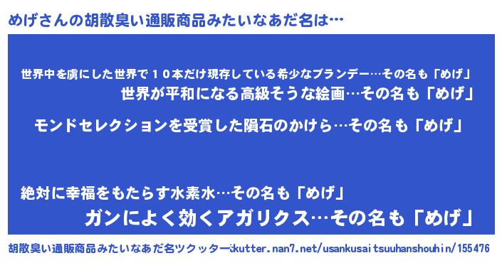 | 意味不明あだ名 | 『眠気覚ましガムめげ味』『自称めげ』 |