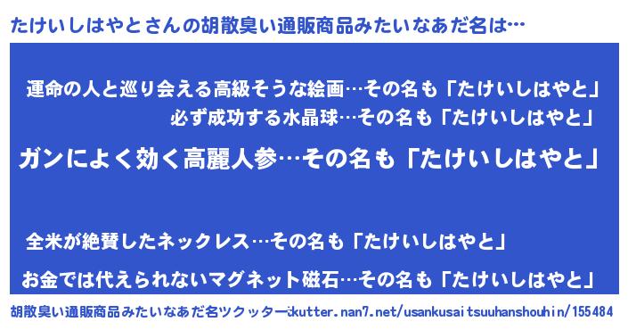| 意味不明あだ名 | 『自称たけいしはやと』 |