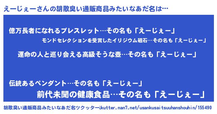 | 意味不明あだ名 | 『えーじぇーフォーエバー』 |