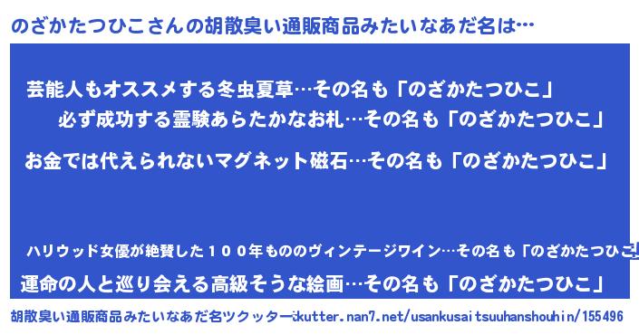 | 男性向けラノベタイトル風あだ名 | 『ノーゲーム・ノーノザカタツヒコ』 |