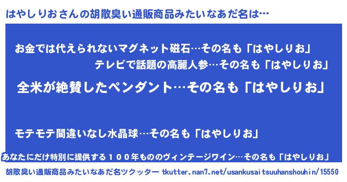 | 意味不明あだ名 | 『とにかく怪しいはやしりお』 |