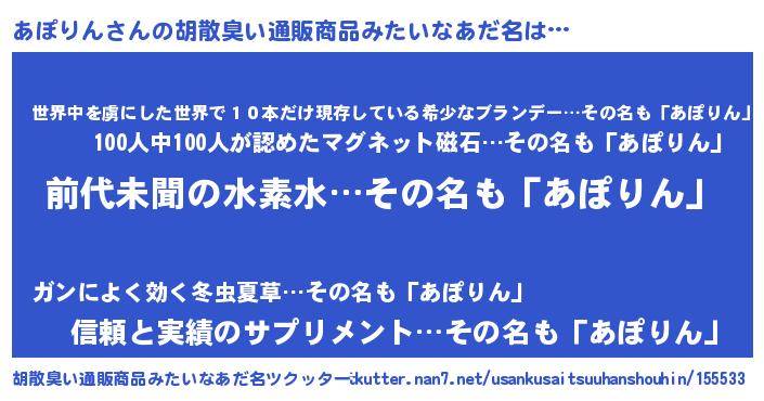 | 意味不明あだ名 | 『永久保存あぽりん』 |