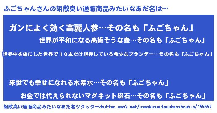 | 意味不明あだ名 | 『住所不定無職ふごちゃん(77歳)』 |