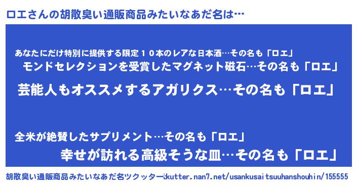| 欧米人風あだ名 | 『ケンブリッジロエ』『ダレノガレロエ』 |