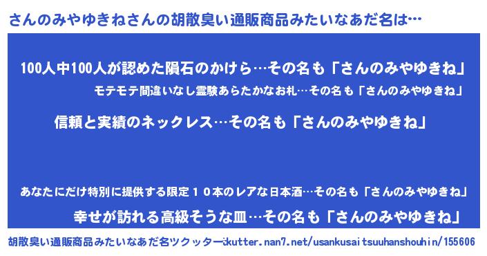 | 欧米人風あだ名 | 『ウサインさんのみやゆきね』 |