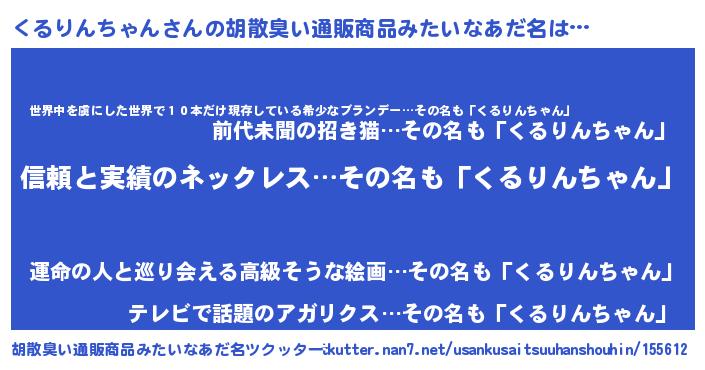 | 意味不明あだ名 | 『とにかく怪しいくるりんちゃん』 |