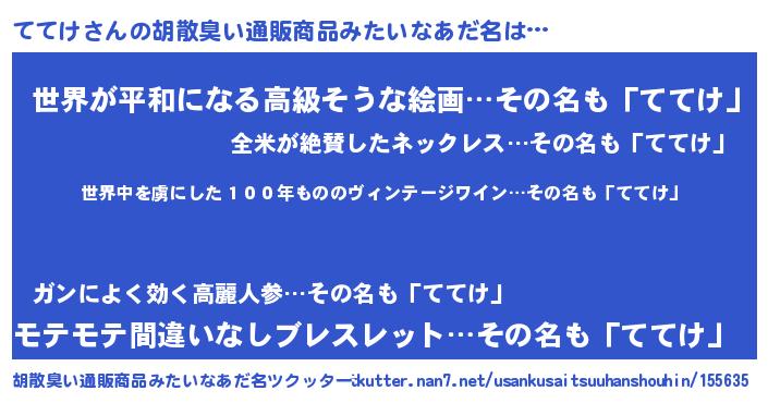 | 男性向けラノベタイトル風あだ名 | 『はたらくててけさま!』『ててけの憂鬱』 |