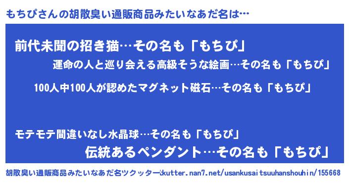 | ヘコむあだ名 | 『もちぴ(笑)』『もちぷりん』 |
