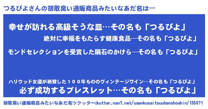 | 欧米人風あだ名 | 『ダニエルつるぴよ』『マイケルつるぴよ』 |