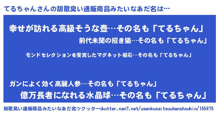 | ヒーロー風カッコイイあだ名 | 『慈愛の使者てるちゃん』 |