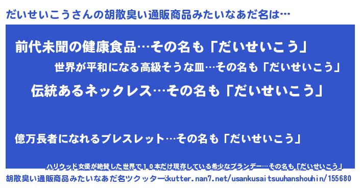| ヘコむあだ名 | 『だいっぺ』『だいせいこう(苦笑)』 |