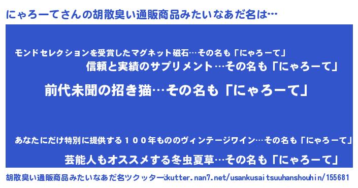 | 意味不明あだ名 | 『永久保存にゃろーて』『自称にゃろーて』 |