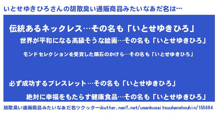 | ヘコむあだ名 | 『いとっちょ』『いとせゆきひろ(笑)』 |