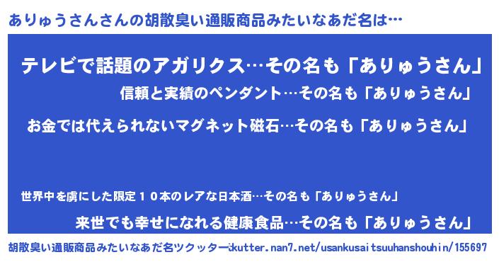 | ヘコむあだ名 | 『ありゅうさん(笑)』『ありっ子』 |