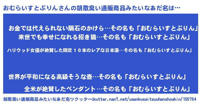 | 意味不明あだ名 | 『住所不定無職おむらいすとぷりん(53歳)』 |