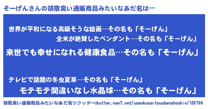 | ヒーロー風カッコイイあだ名 | 『ネオソーゲン』『ウルトラそーげんマン』 |