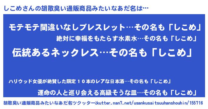 | 意味不明あだ名 | 『とにかく怪しいしこめ』 |