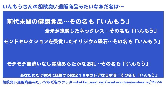 | ヘコむあだ名 | 『いんもう(爆)』『いんっちょ』 |