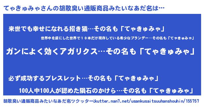 | ヘコむあだ名 | 『てゃきゅみゃ(笑)』『てゃにー』 |