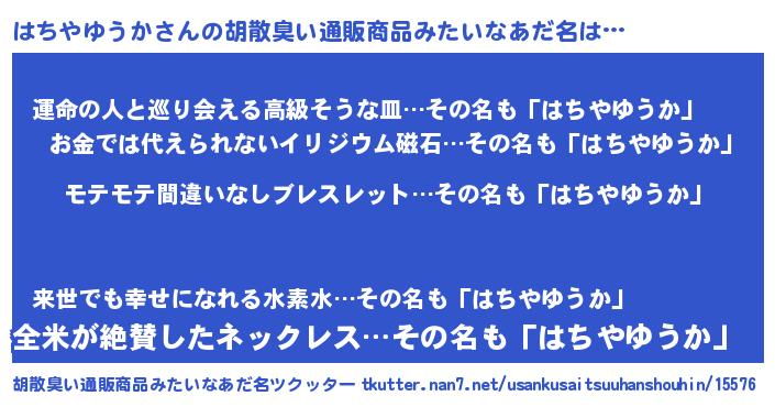 はちやゆうかさんの胡散臭い通販商品みたいなあだ名をツクッター!
