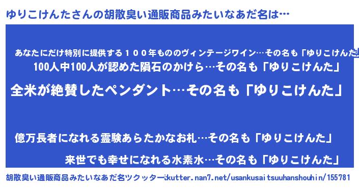 | 意味不明あだ名 | 『とにかく怪しいゆりこけんた』 |