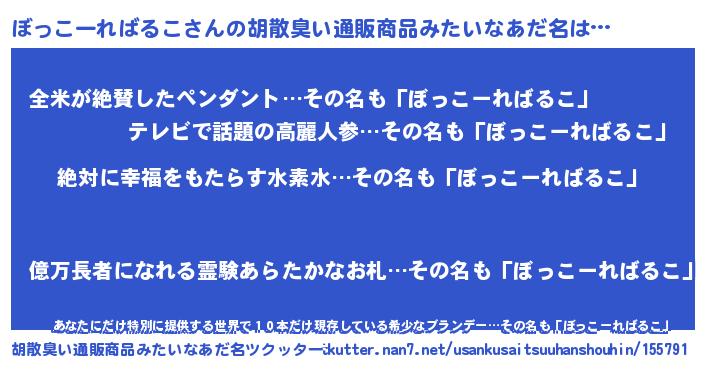 | 意味不明あだ名 | 『永久保存ぼっこーればるこ』 |