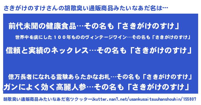 | 意味不明あだ名 | 『とにかく怪しいさきがけのすけ』 |