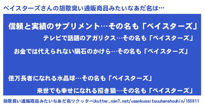 | ことわざ | 泣きっ面に蜂『泣きっ面にベイスターズ』 |