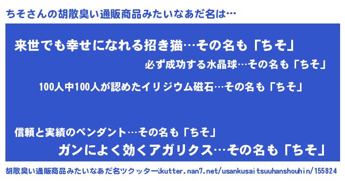 | 可愛いあだ名 | 『ちそぷりん』『ちそちゅっちゅ』 |
