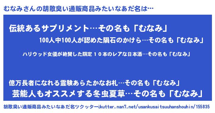 | 男性向けラノベタイトル風あだ名 | 『ムナミスレイヤー』『緋弾のムナミ』 |