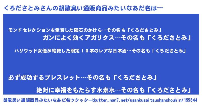 | 意味不明あだ名 | 『住所不定無職くろださとみ(14歳)』 |