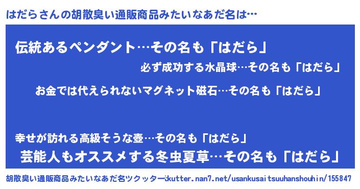 | 意味不明あだ名 | 『眠気覚ましガムはだら味』『自称はだら』 |