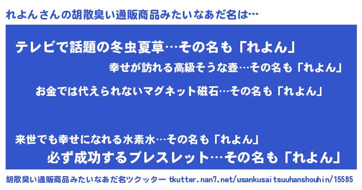 | 女子向けラノベタイトル風あだ名 | 『れよん恋絵巻』『れよんの雑貨屋さん』 |