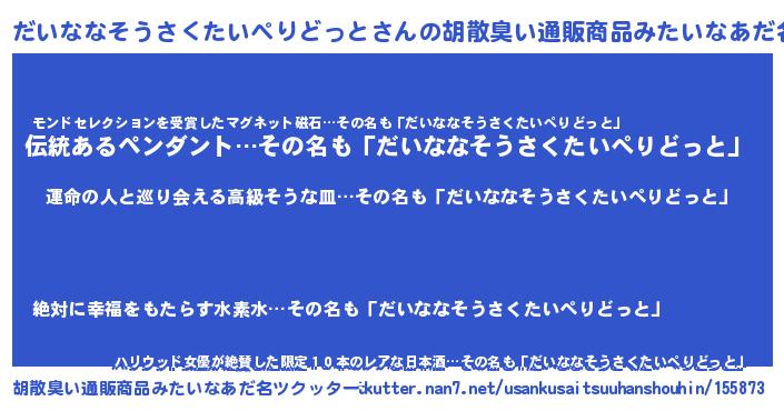 | ヒーロー風カッコイイあだ名 | 『ウルトラだいななそうさくたいぺりどっとマン』 |